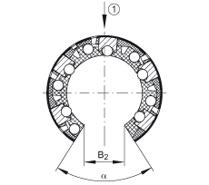 • 在主載荷方向的基本額定載荷 基本額定載荷僅適用于淬硬(670+170 HV)及磨削過的作為滾道的軸。
