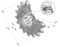 • 鏈傳動(dòng)惰輪輪齒單元作為組合型號(hào)的例子 KSR15-B0-06-10-20-08 KSR 鏈傳動(dòng)惰輪輪齒單元 15 軸承內(nèi)徑 B0 帶偏心套的外球面球軸承, 系列 RAE..-NPP 06 惰輪節(jié)圓 1/16