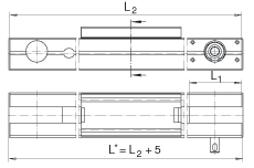 - L2 = 總行程 + L + 2 x L1 L tot = 總行程 + L + 2 x L1 + 5 總行程= 有效行程 + 2 x S S指適合于特殊應用的安全范圍,應該至少為40mm;總行程單位為mm。 最大支承軌長度 L2 = 8000 mm