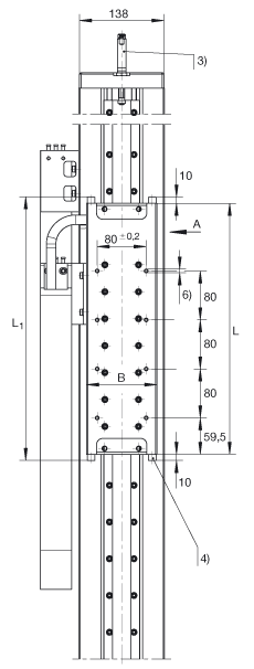 - L2 = 總行程 + L1 + 54 Ltot = 總行程 + L + 54 + 86 總行程= 有效行程 + 2 x S 允差 S 指適合于特殊應(yīng)用的安全范圍,至少應(yīng)為50 mm;總行程單位為mm。 最大單根支撐軌長度 L2 = 8000 mm