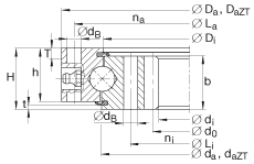 • 適用于帶定心套的軸承(后綴 ZT) 定心套長度(T,t)(見零件圖) 公差:-IT8