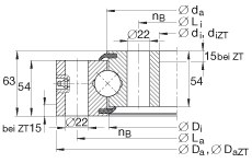 • 適用于帶定心套的軸承(后綴 ZT) 定心套長(zhǎng)度(T,t)(見(jiàn)零件圖) 公差:+IT8